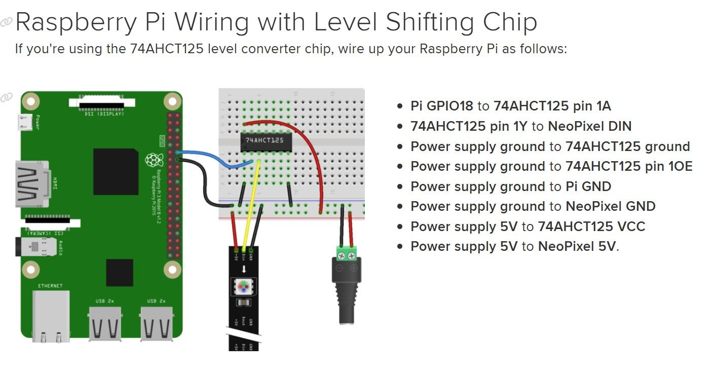 I ran across a video by Core-Electronics that showed me the proper way to wire up the LEDs with a separate power supply.