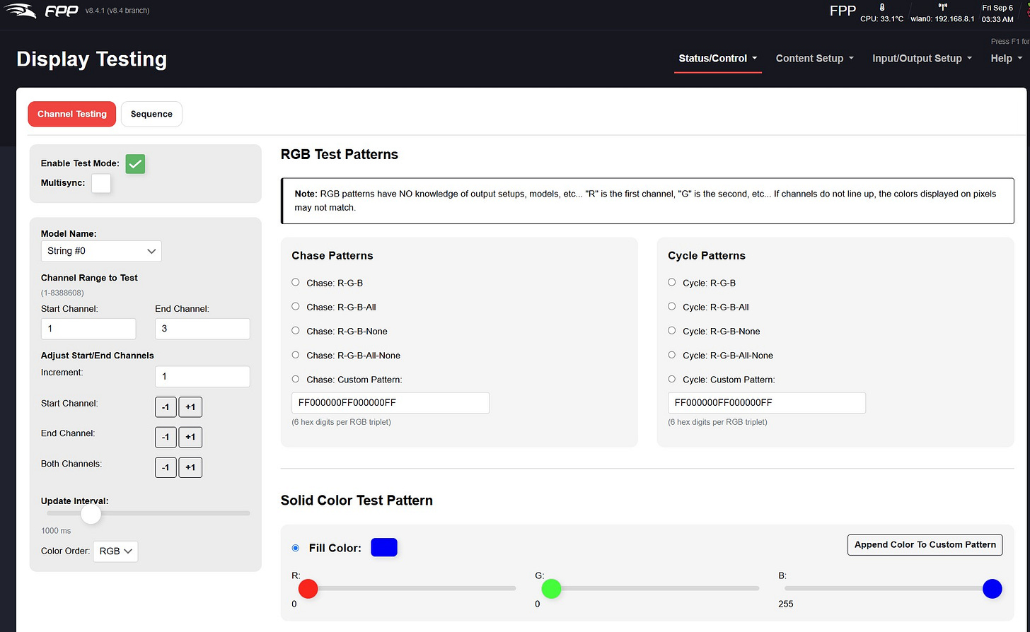 During my initial testing, I started seeing random lights playing. So the first thing I did was isolate one LED in the Falcon Player and set it to blue. I got random flicker as seen in the video above.